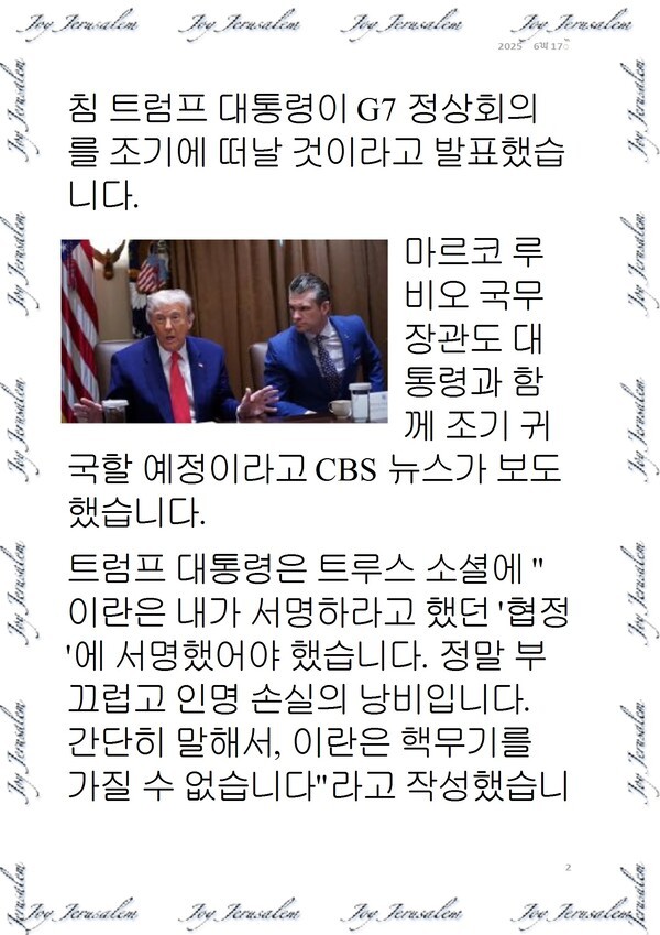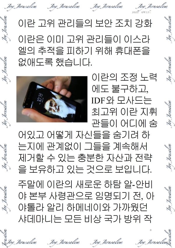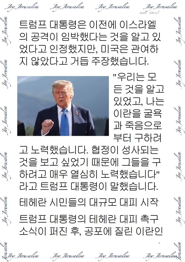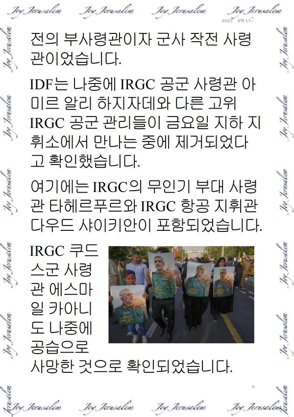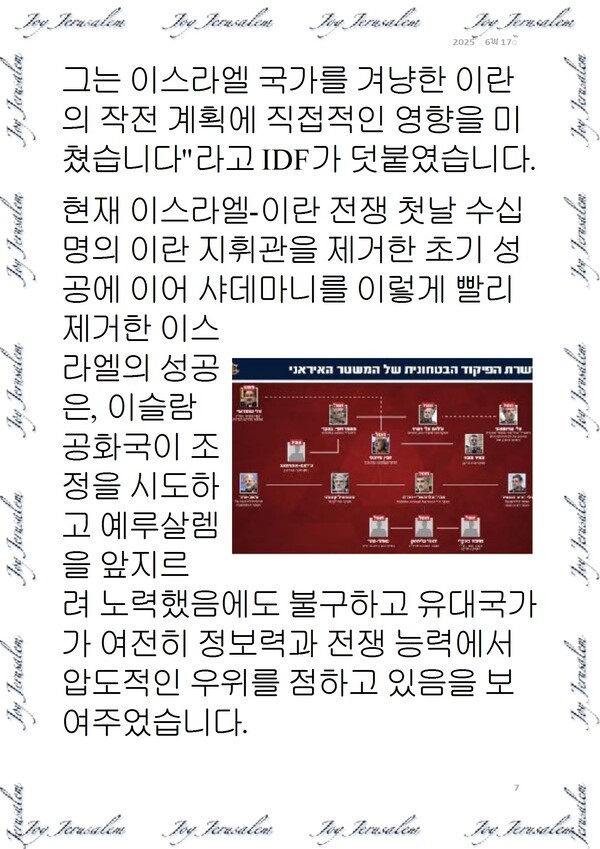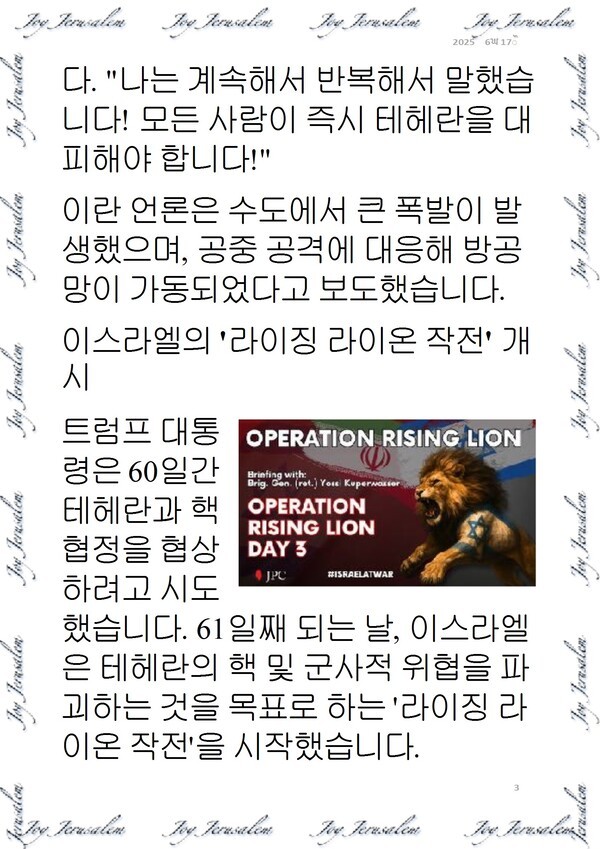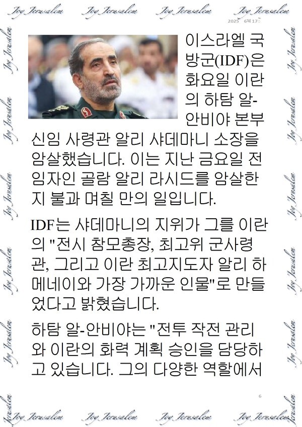 - 이스라엘. 이란 고위 군사지휘관 연쇄 제거 - 라이징 라이언 작전으로 핵 시설 파괴 목표 조성은 특파원 webmaster@sandtimes.co.kr 다른기사 저작권자 © 샌드타임즈 무단전재 및 재배포 금지 개의 댓글 회원로그인 작성자 비밀번호 댓글 내용입력 댓글 정렬 최신순 추천순 답글순 BEST댓글 BEST 댓글 답글과 추천수를 합산하여 자동으로 노출됩니다. 닫기 더보기 댓글삭제 삭제한 댓글은 다시 복구할 수 없습니다. 그래도 삭제하시겠습니까? 비밀번호 댓글수정 댓글 수정은 작성 후 1분내에만 가능합니다. 본문 / 400 비밀번호 내 댓글 모음 닫기
