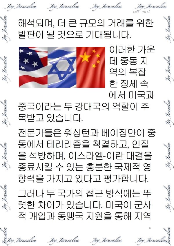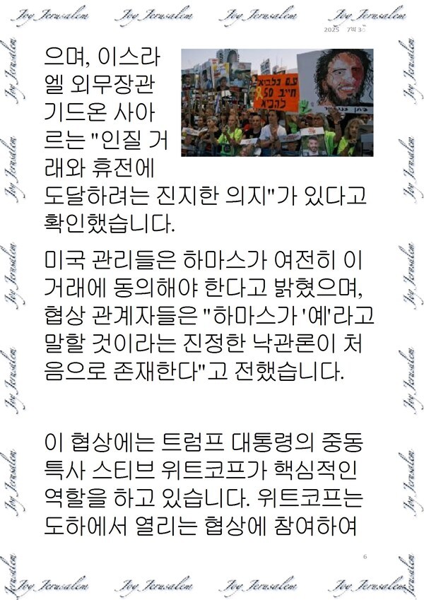 조성은 통신원 webmaster@sandtimes.co.kr 다른기사 관련기사 美·이 ‘가자지구 평화구상’ 합의…인질 석방·무장 해제, 민간정부 수립 저작권자 © 샌드타임즈 무단전재 및 재배포 금지 개의 댓글 회원로그인 작성자 비밀번호 댓글 내용입력 댓글 정렬 최신순 추천순 답글순 BEST댓글 BEST 댓글 답글과 추천수를 합산하여 자동으로 노출됩니다. 닫기 더보기 댓글삭제 삭제한 댓글은 다시 복구할 수 없습니다. 그래도 삭제하시겠습니까? 비밀번호 댓글수정 댓글 수정은 작성 후 1분내에만 가능합니다. 본문 / 400 비밀번호 내 댓글 모음 닫기