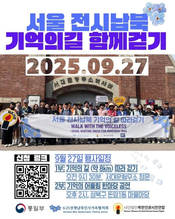 북한인권시민연합과 6·25전쟁납북인사가족협의회가 한국전쟁 납북 피해 75주년을 맞아 ‘서울 전시납북 기억의 길 함께 걷기’ 행사를 열었다. 납북자들이 끌려가던 길을 직접 걸으며 역사적 비극을 되새기고 피해자 가족들과 교류하는 자리다.