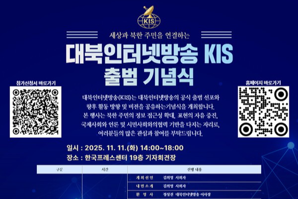 해외 북한 주민에 정보를 전하는 대북인터넷방송 KIS(Korea Internet Studio)가 오는 11일 서울 중구 한국프레스센터 19층 기자회견장에서 출범 기념식을 갖고 공식적인 활동에 돌입한다. KIS는 이번 출범을 통해 북한 주민의 정보 접근권 확대와 표현의 자유 증진에 기여하겠다는 목표를 제시했다.